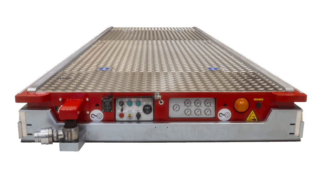 The load to be transported is placed either directly on the Mover or on a load pallet, under which the Air Film Mover drives to collect the load. When in operation the Mover and load float on a thin film of air which provides virtually friction-free transportation and therefore causes no floor wear.